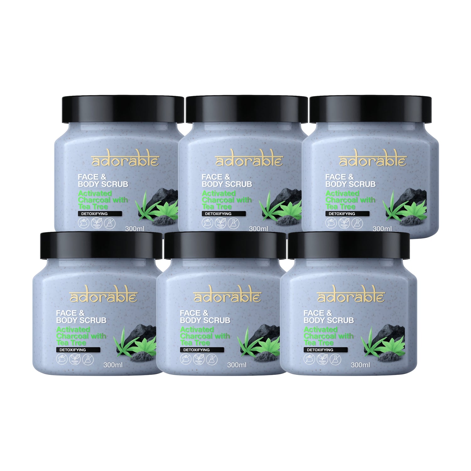 Pack Adorable 6 Exfoliantes Carbón Activo&Árbol de Té 300ml